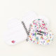 Portátiles de papel con una espiral divertida, recubiertos de bonito, colgados de pintura colorida en la parte delantera y trasera, con acuarelas azul claro, verde, amarillo, naranja, rojo, rosa y morado sobre un fondo blanco. Se muestra con el texto de ejemplo, Nombre, Diario. Personalízalo con tu nombre y asunto de clase, u otro texto. O bien, elimine los campos del cuadro de texto para mostrar sólo la imagen. Diversión para la escuela, garabatos o negocios. Diseño original de arte gráfico por TamiraZDesigns. Visita mi tienda para ver artículos más únicos en: www.zazzle.com/tamirazdesigns