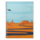 Cuaderno paisaje con valle desierto, montañas, w oscuro