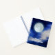 Revista soñada en un montaje fotográfico mejorado digitalmente de la luna llena, rodeado por un halo, contra un cielo azul profundo de la noche y nubes iluminadas por la luna. texto personalizado