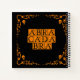 Una antigua incantación arcana o un hechizo realizado para la protección. La palabra mágica en un naranja vívido, con una letra espeluznante con murciélagos y un borde con cráneos para Halloween