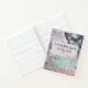 Esta revista creativa expresiva tiene un fondo de pintura abstracta de medios mixtos con mariposas y pájaros. En su interior está a la espera de ser rellenada con las palabras que le hablan a su alma. De citas de libros y poesía a letras de canciones. Puedes personalizarlo con un nombre que haga de esto un regalo para un amigo.
