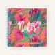 Nuestro hermoso cuaderno captura las vibraciones de un oasis tropical con nuestras hojas tropicales dibujadas a mano, follaje y vibrantes flores tropicales de hibiscus rosa para crear este diseño elegante y vibrante de selva tropical. "Notes" se muestra en una tipografía de escritura de pincel de moda en blanco y personalizado con su nombre en la parte delantera y trasera. El reverso presenta un diseño moderno y elegante de rayas de coral rosa y oro fino con una hermosa hoja tropical y follaje floral. Todos los ilustraciones de este elegante oasis tropical con flores de hojas de palma y hibiscos rosas son obras de arte originales de Moodthology. Puede personalizar el color de fondo de su propia preferencia de diseño personal.
