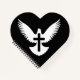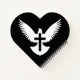 Silueta blanca de paloma con alas abiertas y una cruz sobre fondo negro.