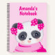 Este es un cuaderno adorable para una chica y haría una maravillosa adición a su papelería de regreso a la escuela. La portada del cuaderno tiene un adorable panda chica con arcos rosados de puntos de polka y el fondo es rosa claro. El cuaderno se puede personalizar con el nombre del chica y para qué va a usar el libro.