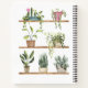 Se exhiben plantas potentes. Tres hileras de macetas en estanterías. Colores de agua pintados a mano.