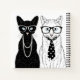 Este diseño presenta un gato negro de sexo femenino vestido con collar de perlas y un gato blanco de sexo masculino vestido con corbata puntiaguda.
