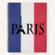 Ilustracion de diseño de texto de París con decoración de la Torre Eiffel sobre fondo de la bandera francesa gruesa