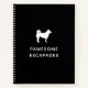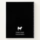Un cuaderno diseñado para un caminante de perros, niñera de mascotas, cuidado de perros, entrenamiento de perros o negocio de cuidado animal. El diseño es sencillo y moderno y cuenta con un gráfico canino junto con el nombre de su empresa sobre un fondo negro. Un portátil profesional perfecto para organizar su negocio de servicios para mascotas.