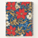 Un patrón lujoso y dramático de flores rojas sobre hojas doradas y fondo azul que aporta un toque de opulencia y energía.