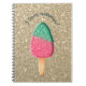 Este cuaderno no sólo es de moda, sino también delicioso, con su helado "purpurinoso" y su fondo "dorado".