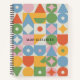 Cute pastel notebook decorated with circles, triangles, and squares in a soft modern geometric style.