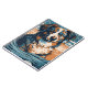 Diseño de arte colorido y vívido de un pastor australiano en una playa tropical.