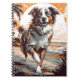 Diseño de arte colorido y vívido de un pastor australiano en una playa tropical.