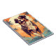 Diseño de arte colorido y vívido de un pastor australiano en una playa tropical.