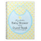 "Libro de visitas elegante moderno de Baby Shower". Babero del bebé azul, fondo de goma amarillo de los duckies. Este "Guestbook de Baby Shower" será un recuerdo acariciado para el mamá-a-ser. Deje a sus huéspedes escribir algo especial en este libro de visitas adorable de la fiesta de bienvenida al bebé, cuaderno. ¡No pierda de vista los regalos de la ducha! Personalice para adaptarse a sus necesidades. Perfeccione para una mamá, que está contando con a un muchacho y está teniendo una moda moderna o un pato de goma amarillo temático, fiesta de bienvenida al bebé. Para ver productos a juego, como invitaciones y los pegatinas u otros colores-Por favor visite mi tienda "la princesa de Hungarican" en www.zazzle.com/hungaricanprincess*. Mire en mi "oh departamento de la categoría del bebé". Enhorabuena!.