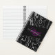 Cuaderno Patrón abstracto de damasco blanco negro Monograma