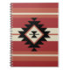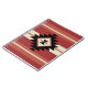 Patrón bohemio étnico azteca con formas geométricas en rojo, naranja, gris y negro sobre fondo rayado