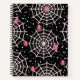 Portátil espiral con un lindo patrón sin costuras con telarañas blancas y arañas rosadas.