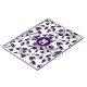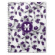 Este cuaderno espiral con tema de fútbol presenta un patrón de balones de fútbol púrpura y blanco dispuestos al azar en diferentes tamaños y orientaciones sobre un fondo blanco - el nombre del jugador y monograma o número de camiseta son personalizables - por katz_d_zynes