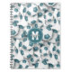 Este cuaderno espiral con tema de fútbol presenta un patrón de balones de fútbol teal y blancos dispuestos al azar en diferentes tamaños y orientaciones sobre un fondo blanco - el nombre del jugador y el monograma o número de camiseta son personalizables - por katz_d_zynes