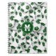 Este cuaderno espiral con tema de fútbol presenta un patrón de balones de fútbol verdes y blancos dispuestos al azar en diferentes tamaños y orientaciones sobre un fondo blanco - el nombre del jugador y el monograma o número de camiseta son personalizables - por katz_d_zynes