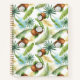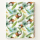 Descubra este diseño acuático con hojas y cocos tropicales.