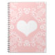 Cuaderno Patrón de Damasco del Corazón Blanco Rosa Femenino