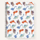 Este bloc de notas en espiral de tamaño completo puede ser personalizado y personalizado con su nombre o texto en la portada y su elección de varios diseños de página dentro. Funciona bien como diario, diario, planificador, cuaderno o cuaderno de esbozo para todo tipo de escritura, pensamientos, garabatos, bocetos, listas, dibujos, notas y más. Excelente para casa, escuela, trabajo, o sólo por diversión. Este diseño presenta una gama de adorables dinosaurios personalizados coloridos en colores azul naranja y violeta.
