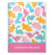 Cuaderno Patrón de dinosaurios divertidos rosa y Verde azul