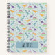 Este diseño de cuaderno de escuela infantil, bonito y moderno, presenta un patrón de personalizado de dinosaurios azul pastel, con un t-rex, estegosaurio, arcos y plantas de jungla jurásica, que se puede personalizar con el nombre de tu hijo. ¡El regalo perfecto con la temática de los dinosaurios para los suministros escolares de su hijo!