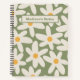 Cuaderno Patrón de flor retro de época de margaritas Verde