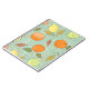 Patrón de fruta con limones, naranjas, lima y pomelo. Frutos cítricos brillantes sobre un fondo verde claro con salpicaduras multicolores de pintura.