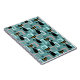 Colorido patrón de estilo abstracto de mediados de siglo con gato negro, estrellas negras y cubos coloridos (azul, blanco, rosa) con fondo turquesa para cada amante del gato, mamá del gato y papá del gato.