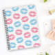 Cuaderno Patrón de labios azules y rosas, lápiz labial, bes