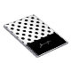 Un diseño chic, siempre de moda, con lunares negros sobre un fondo blanco y un monograma personalizado que puedes editar con tu nombre u otro texto deseado. Una excelente opción para el hogar, la oficina o el regreso a la escuela.