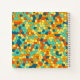 Patrón de mosaico vibrante compuesto por varias formas coloreadas, principalmente hexágonos y polígonos. Los colores incluyen tonos brillantes de naranja, amarillo, turquesa y azul, creando un efecto visual animado y enérgico.