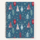Patrón de Navidades de invierno. Estilizados árboles de Navidad rojos, verdes, bolas de Navidad sobre un fondo azul.