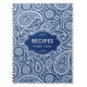 Elegante patrón de paisley vintage azul marino y blanco, plantilla personalizable de mini carpeta.