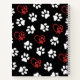 Patrón lindo, divertido y adorable con patas blancas y rojos y corazones sobre fondo negro. Regalo moderno y de moda, perfecto para el amante del perro en tu vida.