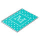 Diseño monograma personalizado en blanco y verde azulado. La carta inicial se puede personalizar. El fondo es un patrón de puntos polka en verde azulado y blanco.