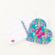 Portátil en forma de corazón en un patrón de giro fractal en tonos azul, rosa, verde y turquesa, acentuado con blanco, con monograma personalizado