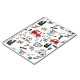 ,Un patrón de ciudad estilo caricatura divertido que presenta autobuses, autos, helicópteros, semáforos, edificios y texto divertido como “Beep Beep”, “Wuz Up?” y “Go”, en tonos brillantes de rojo, amarillo, azul y negro.