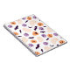 Este diseño presenta un patrón de Halloween juguetón y colorido con un diseño minimalista. El patrón incluye formas simples y redondeadas de jack-o'-lanterns, fantasmas, calaveras y murciélagos, todos dispersos sobre un fondo blanco. La paleta de colores es suave pero vibrante, con calabazas en tonos de naranja, fantasmas en melocotón pálido, calaveras en lavanda y murciélagos en púrpura profundo. Cada elemento tiene una expresión linda y amigable, lo que hace que el patrón sea divertido y ligero, perfecto para decoraciones de Halloween o temas de fiestas infantiles. El diseño general es alegre y festivo, capturando el lado caprichoso de Halloween.