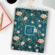 Cuaderno Patrón elegante de monograma volcánico cyan oscuro