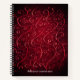 Un cuaderno rojo elegante con una bella pintura digital abstracta texturada de unos brillantes remolinos rojos y un texto de personalizable.
