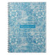 En este bonito cuaderno de espiral se presenta este patrón floral ornamental en blanco y azul bonito, con un patrón de rejilla decorativa sobre el diseño floral. Fácilmente personalizarlo con tu nombre.