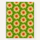 Cuaderno de tamaño estándar con tapa en espiral para el hogar, la escuela o la oficina que presenta tanto la cubierta delantera como la trasera con la imagen fotográfica de una flor de Dalia amarilla sobre un fondo verde lima y impresa en un patrón repetitivo. ¡Un diseño floral divertido! Seleccione las opciones de estilo de su cuaderno.