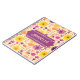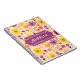 Este colorido y moderno diseño se caracteriza por las flores amarillas, violetas, rosas y naranjas en cascada, con un fondo amarillo suave.