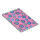 Ilustracion de un patrón azul de flores violeta en fondo rosado para la primavera. Este diseño floral es una idea de regalo para los amantes de las cosas femeninas, de primavera y verano.
