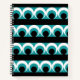 Ilustracion de patrones geométricos con rayas, círculos y formas redondeadas en color turquesa, negro y blanco
